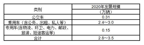 表3.1-1 至2020年各分類(lèi)電動(dòng)汽車(chē)發(fā)展規(guī)模