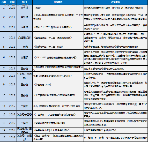 隨后,物聯(lián)網(wǎng)、車聯(lián)網(wǎng)相關(guān)措施陸續(xù)出臺,尤其是近2016年07月工信部《智能網(wǎng)聯(lián)汽車發(fā)展技術(shù)路線圖》基本完成,該路線圖將為行業(yè)發(fā)展提供清晰思路和方向,同時為相關(guān)政策和行業(yè)標準的推出奠定基礎(chǔ)。
