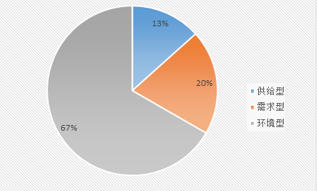 統(tǒng)計分析表明,這些政策工具中,環(huán)境型多,占67%份額,其次是需求型占 20%,少的供給型占 13 %。