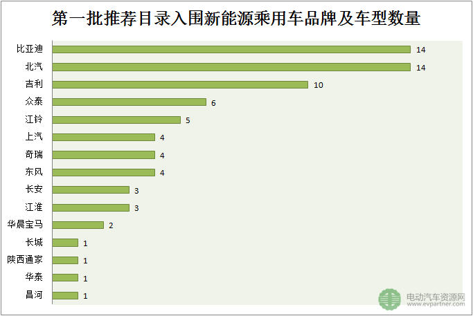 其中,北汽、比亞迪均有14款車(chē)型入圍,成為本批推薦目錄入圍新能源乘用車(chē)數(shù)量多的車(chē)企。此外,吉利有10款新能源乘用車(chē)入圍;眾泰有6款車(chē)型入圍;江鈴有5款車(chē)型入圍;上汽、奇瑞、東風(fēng)均有4款車(chē)型入圍;長(zhǎng)安、江淮均有3款車(chē)型入圍;華晨寶馬有2款車(chē)型入圍;長(zhǎng)城、陜西通家、華泰、昌河各有一款車(chē)型入圍。