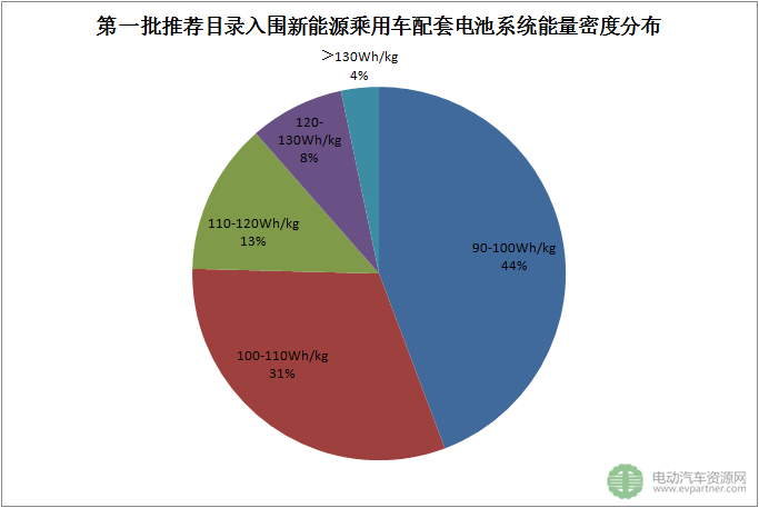 根據(jù)新能源汽車(chē)補(bǔ)貼調(diào)整政策,新能源乘用車(chē)增加了動(dòng)力電池系統(tǒng)的質(zhì)量能量密度要求:不低于90Wh/kg,對(duì)高于120Wh/kg的按1.1倍給予補(bǔ)貼。電動(dòng)汽車(chē)資源網(wǎng)對(duì)本次推薦目錄的新能源乘用車(chē)配套動(dòng)力電池能量密度進(jìn)行了統(tǒng)計(jì)分析。