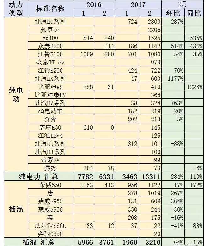 其次,純電動(dòng)乘用車領(lǐng)域中,知豆、江鈴E100、眾泰云100、E200在2月市場(chǎng)表現(xiàn)也不錯(cuò),銷量均超千輛;而插電式乘用車領(lǐng)域,上汽榮威e550車型2月銷量達(dá)1122輛,超過比亞迪唐1019輛,成為插電式領(lǐng)域車型下來。(注:具體車企車型銷量數(shù)據(jù)為后期補(bǔ)充,詳見車型銷量表格)
