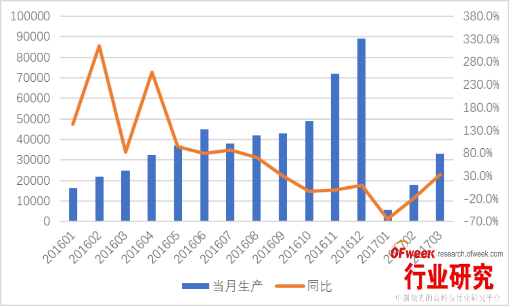 自2017年1月1日正式實(shí)施新補(bǔ)貼政策,并且重建《新能源汽車(chē)推廣應(yīng)用推薦車(chē)型目錄》開(kāi)始,我國(guó)新能源汽車(chē)產(chǎn)業(yè)進(jìn)入政策調(diào)整期,經(jīng)過(guò)三個(gè)月推進(jìn),從月度走勢(shì)圖上看,我國(guó)新能源汽車(chē)產(chǎn)銷(xiāo)情況已經(jīng)逐漸回暖,前三個(gè)月的產(chǎn)量呈現(xiàn)穩(wěn)步放量。