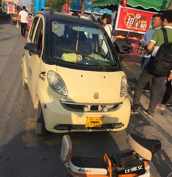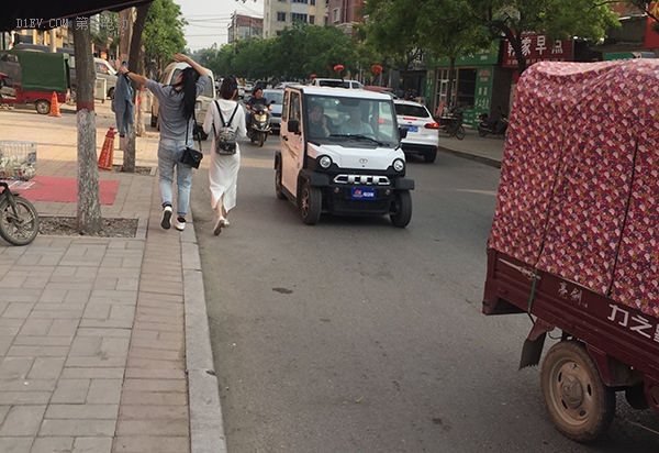 正是地方政府的寬松管理,記者在民權(quán)徒步行走時低速電動車的身影隨處可見,停車道上低速電動車更是一步一個。