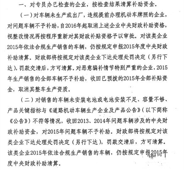 其實,該份通知并非四部委對新能源汽車補(bǔ)貼清算再起波瀾,而是對2016年涉及“車輛閑置”問題的車輛進(jìn)行再次確認(rèn)。2016年9月,四部委向各省市工信部及發(fā)改委下發(fā)了《關(guān)于2015年度新能源汽車推廣應(yīng)用補(bǔ)助資金清算工作的補(bǔ)充通知》,文中表示, “近期,財政部駐各地財政監(jiān)察專員辦事處對2013-2015年新能源汽車推廣應(yīng)用補(bǔ)助資金管理使用情況進(jìn)行了專項檢查,并對以下四種情況進(jìn)行處理: